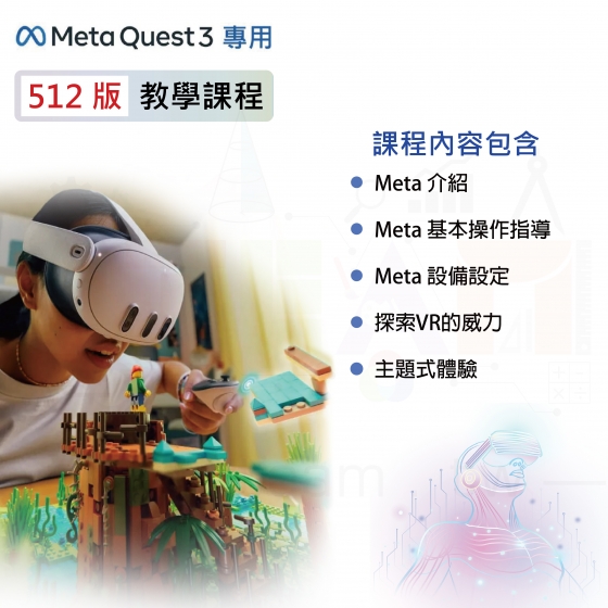 【META23】Meta Quest 3 512版 教學課程套件組 頭盔教學設備全配 (含軟體開通、預載40+款教學內容軟體、開發者帳號設定)
