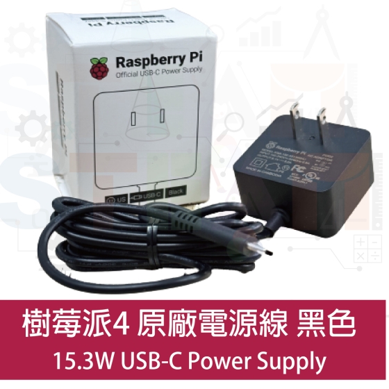 【RPI083】樹莓派 Raspberry Pi 4 電源線 15.3W USB-C 電源線(黑色) 變壓器帶固定電源線