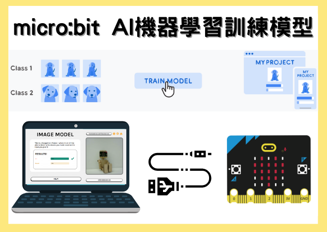 賦予micro:bit 專案 AI 超能力!Google Teachable Machine 機器學習圖片辨識 (Image)、聲音錄製 (Audio)、身體姿勢 (Pose) A MICRO:BIT OF AI Teachable Machine 賦予micro:bit 專案 AI 超能力!A MICRO:BIT OF AI 透過此網站可將micro:bit串接到電腦上的視訊鏡頭,並且做AI圖像機器訓練。 視訊鏡頭可辨識到臉部表情、舉手動作、錄製的聲音或任何你想要放在鏡頭前的物體, 當micro:bit 可判斷到香蕉爛掉沒、你是否正在搖頭、或是聽到聲控指令時,便可透過編程寫出對應的回應! micro:bit AI機器學習專