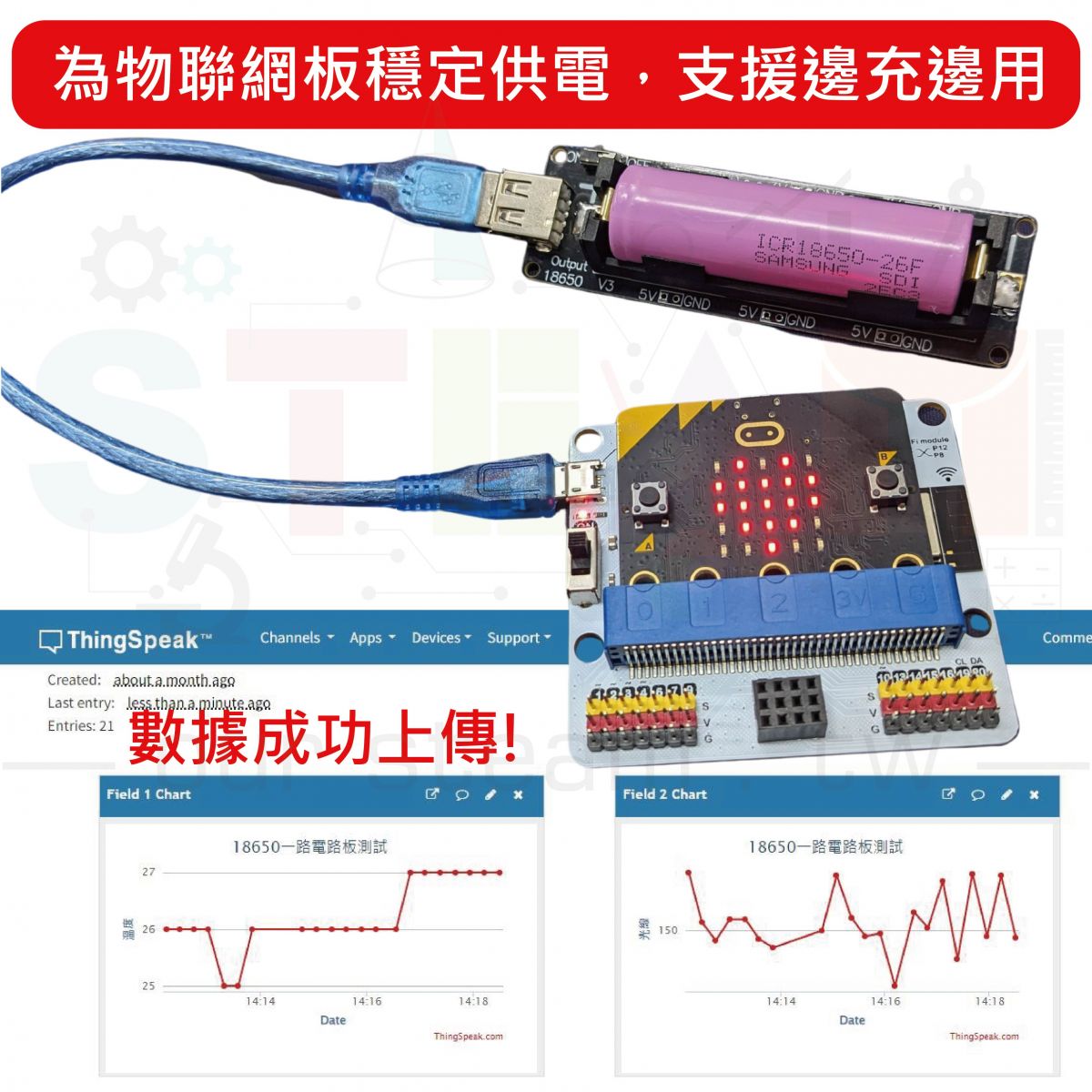 18650鋰電池 充電/供電 電源模組 可於 Arduino、樹莓派、ESP8266、ESP32、micro:bit擴充板使用