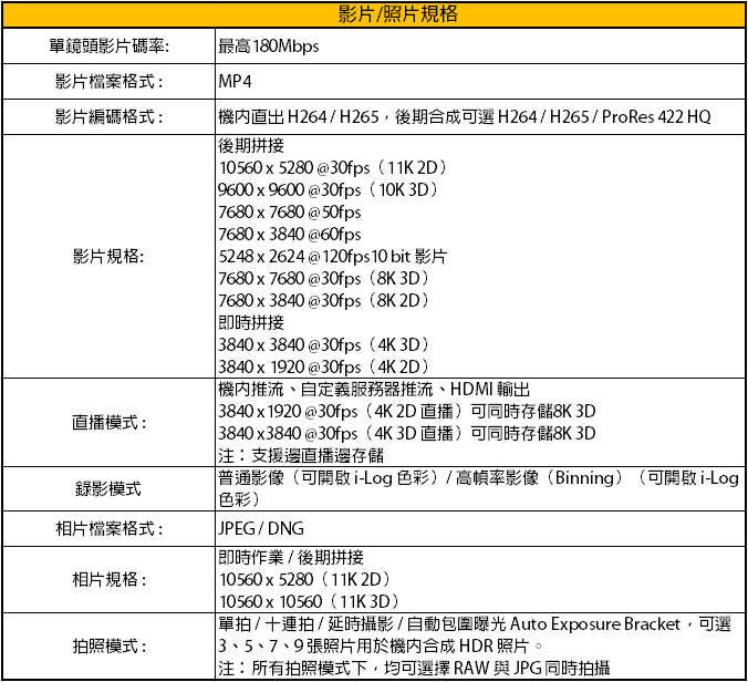 【影片/照片規格】