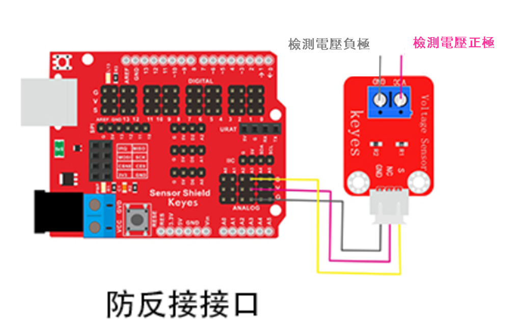 的輸入電壓則不能大於5VX5=25V(如果用到3.3V系統,輸入電壓不能大於3.3Vx5=16.5V) 。傳感器接到KeyesUNOR3開發板