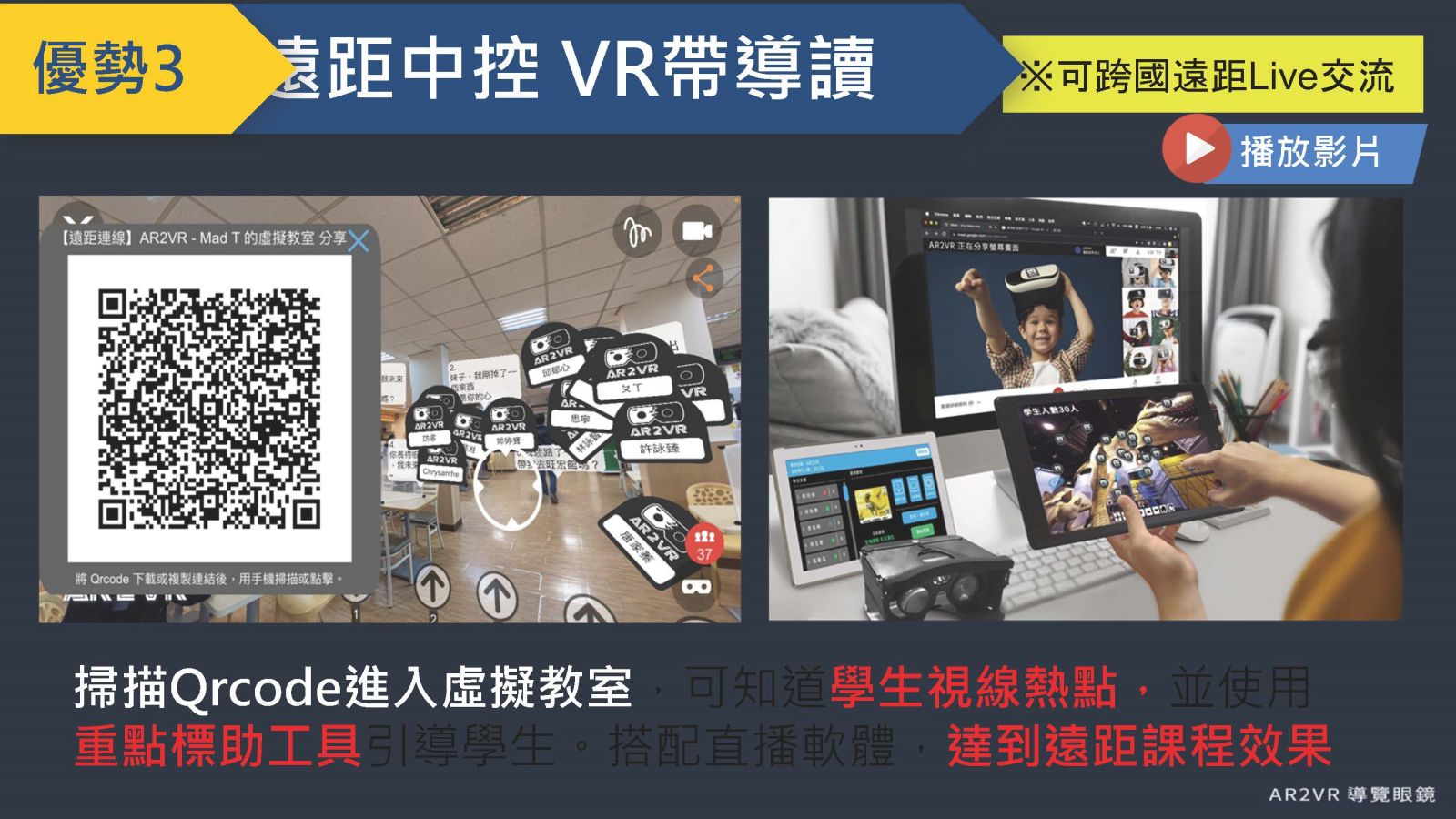 不受網域限制,支援跨縣市、跨國遠端VR導讀教學。