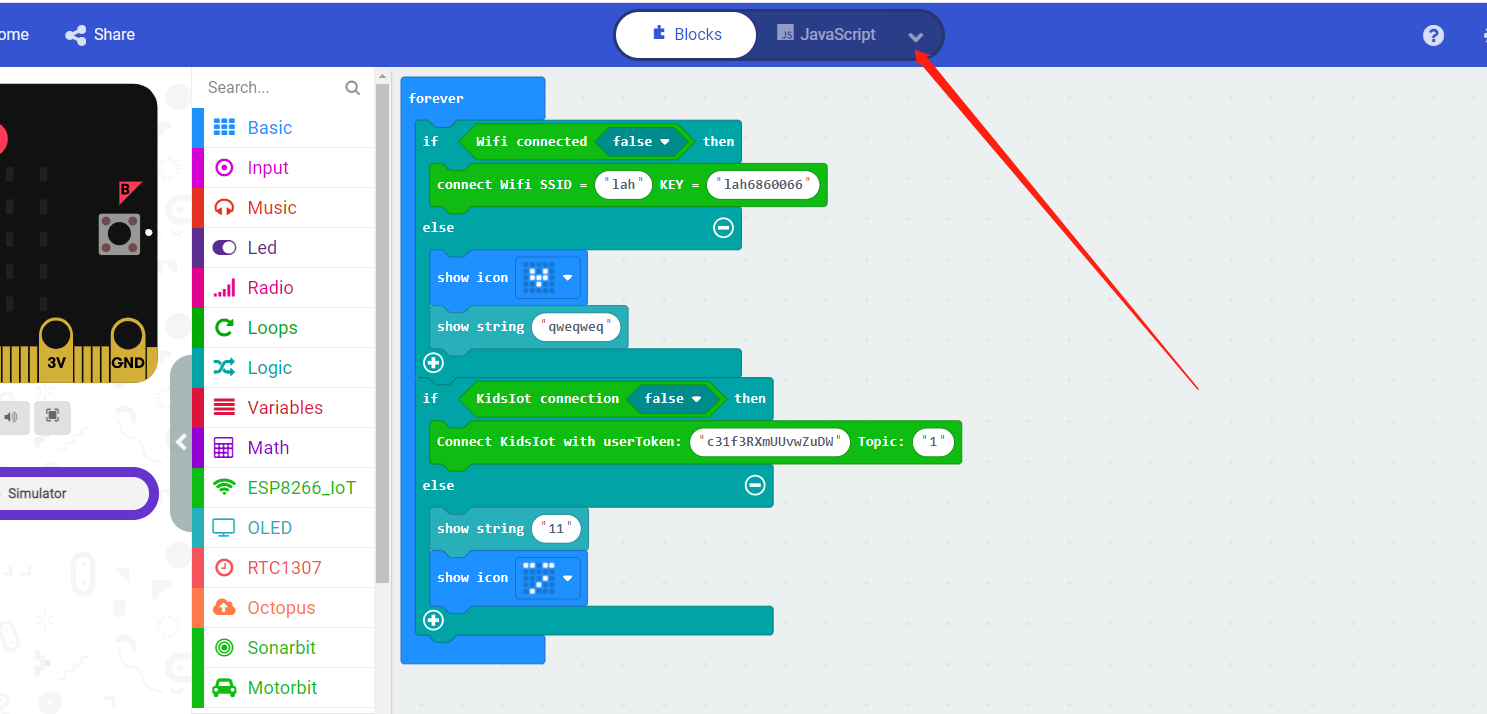 在「ThingSpeak_示範專案」所寫的程式,使micro:bit持續將光線感測器偵測到的光線強度上傳到ThingSpeak。