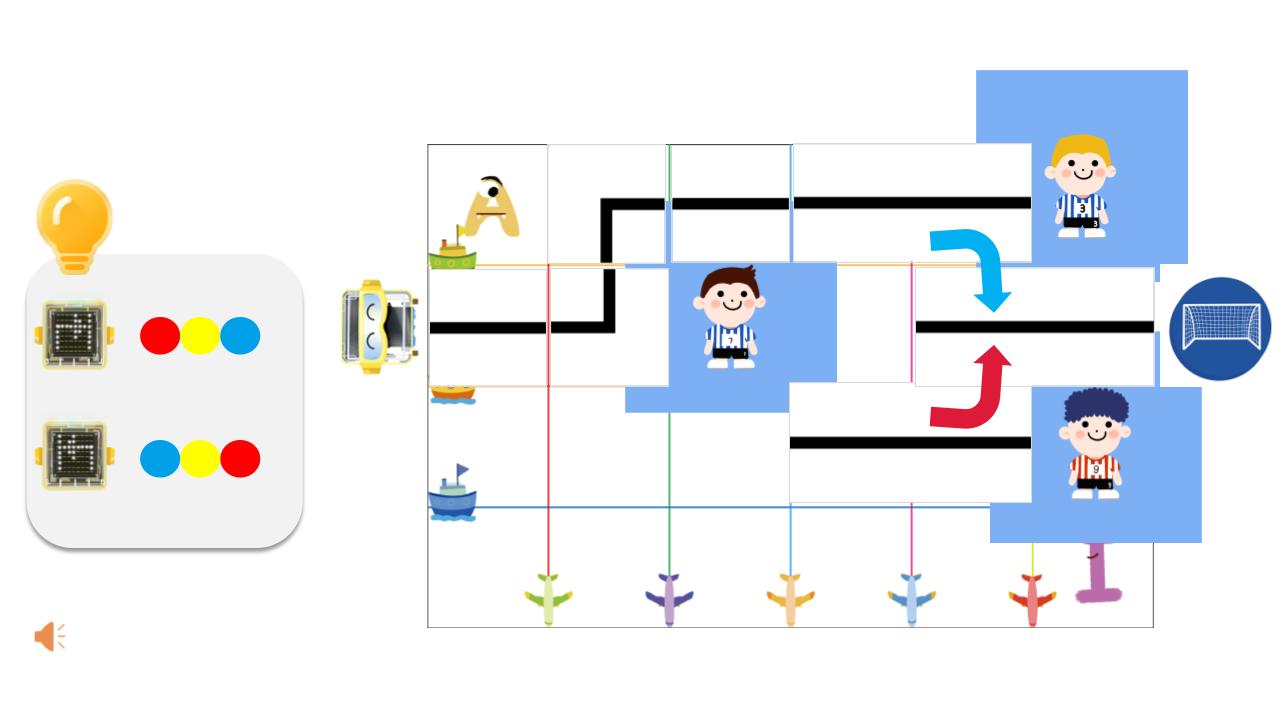 ■ 課程概述:學習運用「方向跳轉指令」完成dodobot在不同路線間的切換,培養空間方位感。