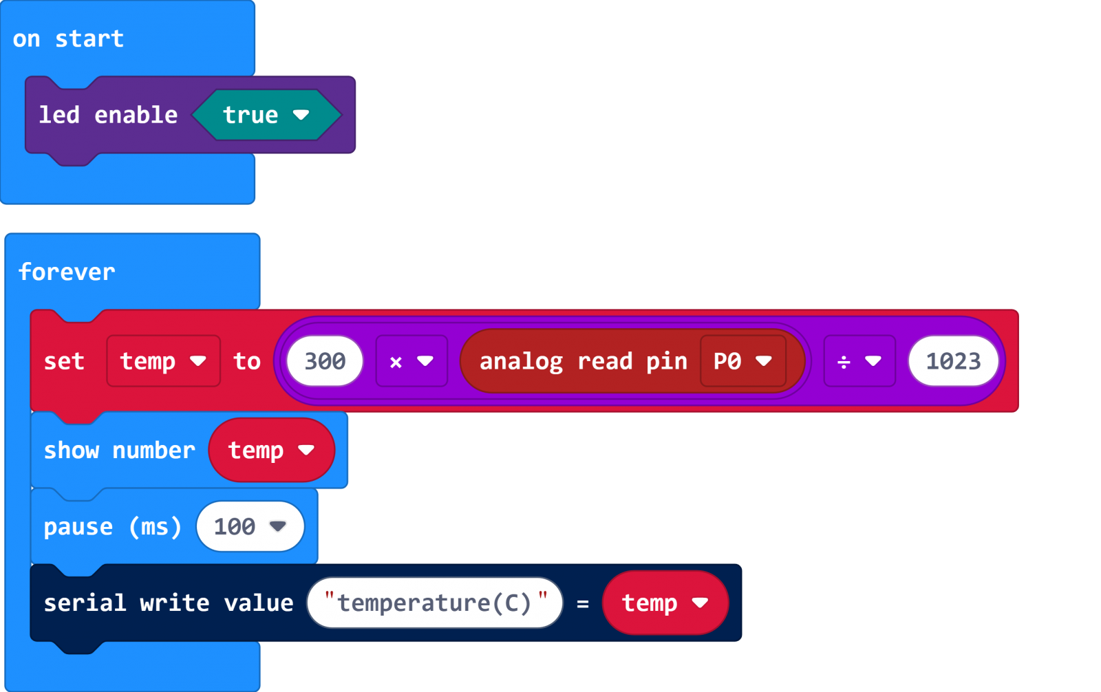 在上一個項目23中,我們僅獲得當前環境中溫度的類比值。現在,我們將使用LM35線性溫度傳感器來檢測環境溫度。最後,通過計算獲得當前環境的特定溫度值,並將其顯示在micro:bit LED矩陣或Arduino螢幕上。